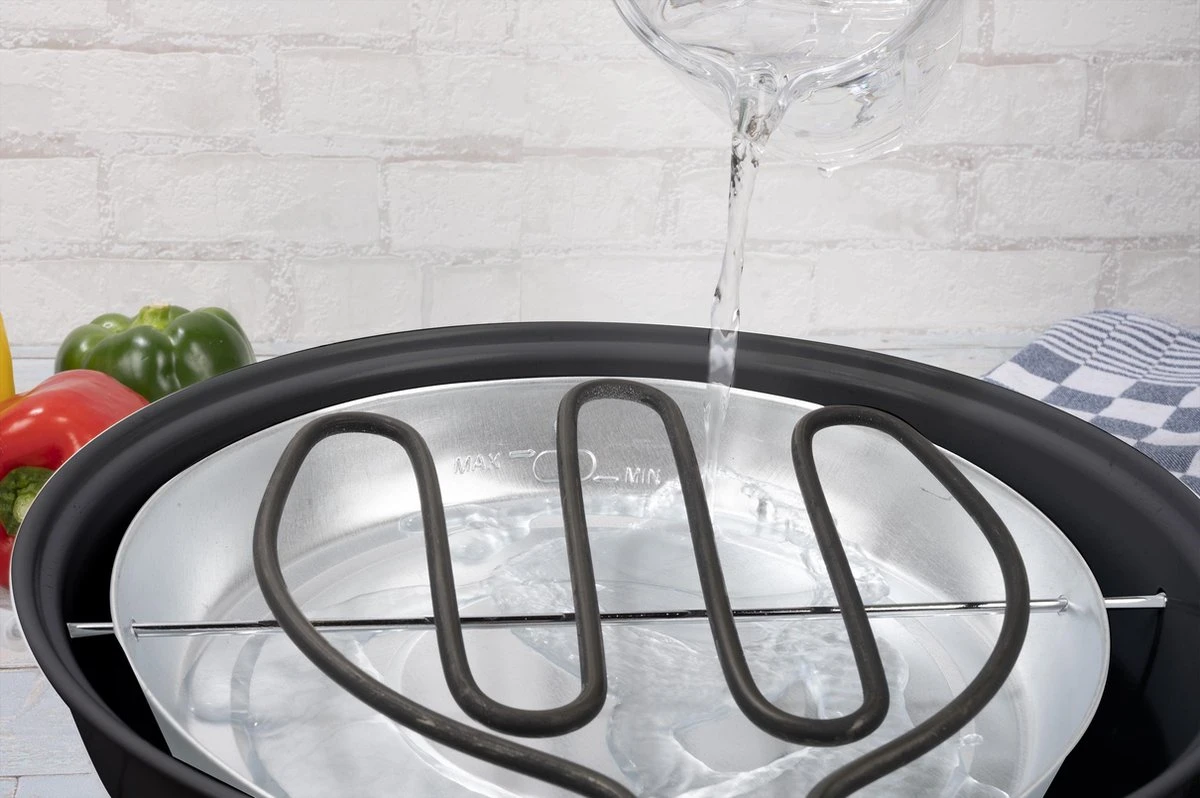 De elektrische barbecue werkt heel gemakkelijk: steek de stekker in een stopcontact, vul het onderstel met een laagje water en laat de barbecue even voorverwarmen. Na een minuut of 5 is de grill al klaar voor gebruik. Het laagje water koelt de grillpan, gaat rookvorming tegen en maakt schoonmaken gemakkelijker. De indicatoren geven het waterniveau aan.