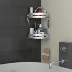 BrandtBergkamp RVS Doucherek 2 Laags – Zonder Boren – Doucherekje Hangend – Badkamerrek Zwart