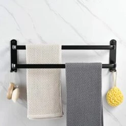 Vannons – Handdoekrek – Handdoekrek Badkamer – 2 Handdoeken – Handdoekrek Zelfklevend – Zwart