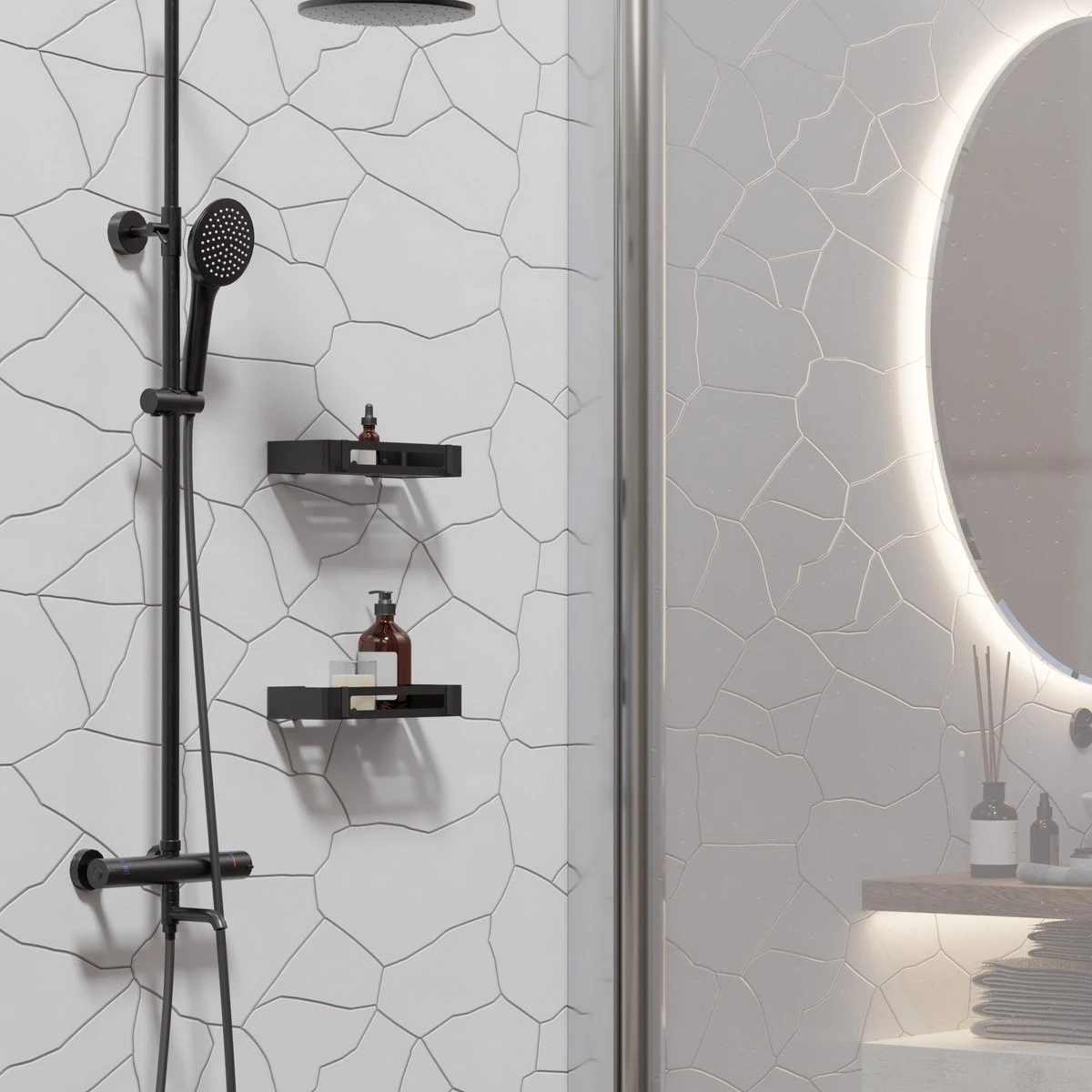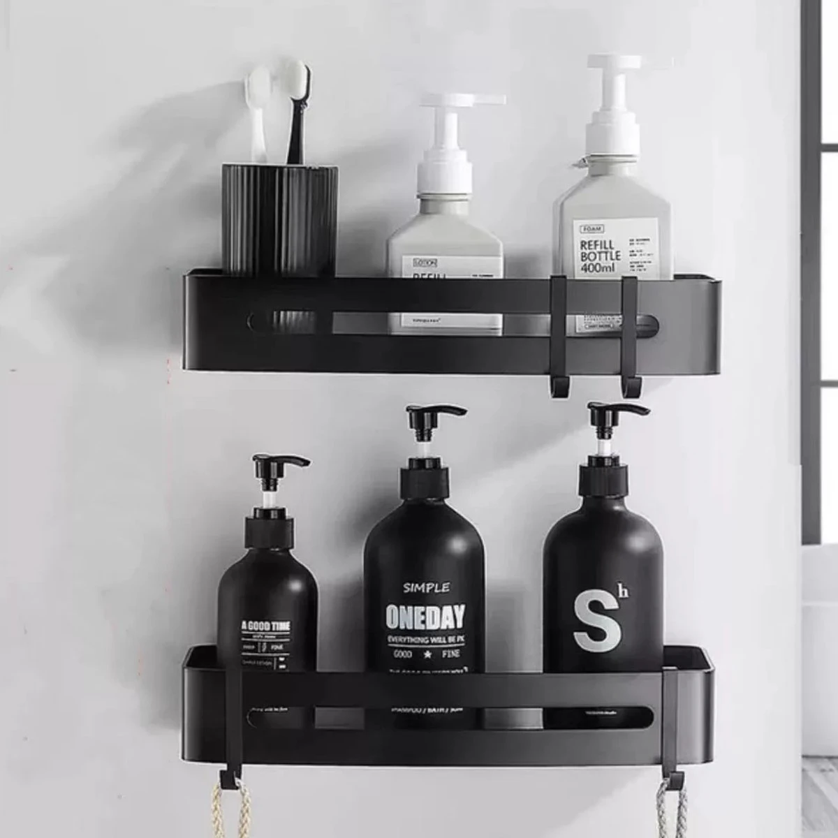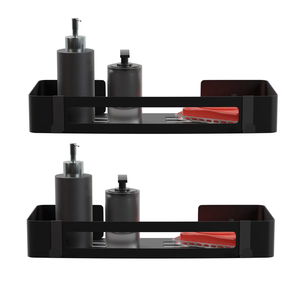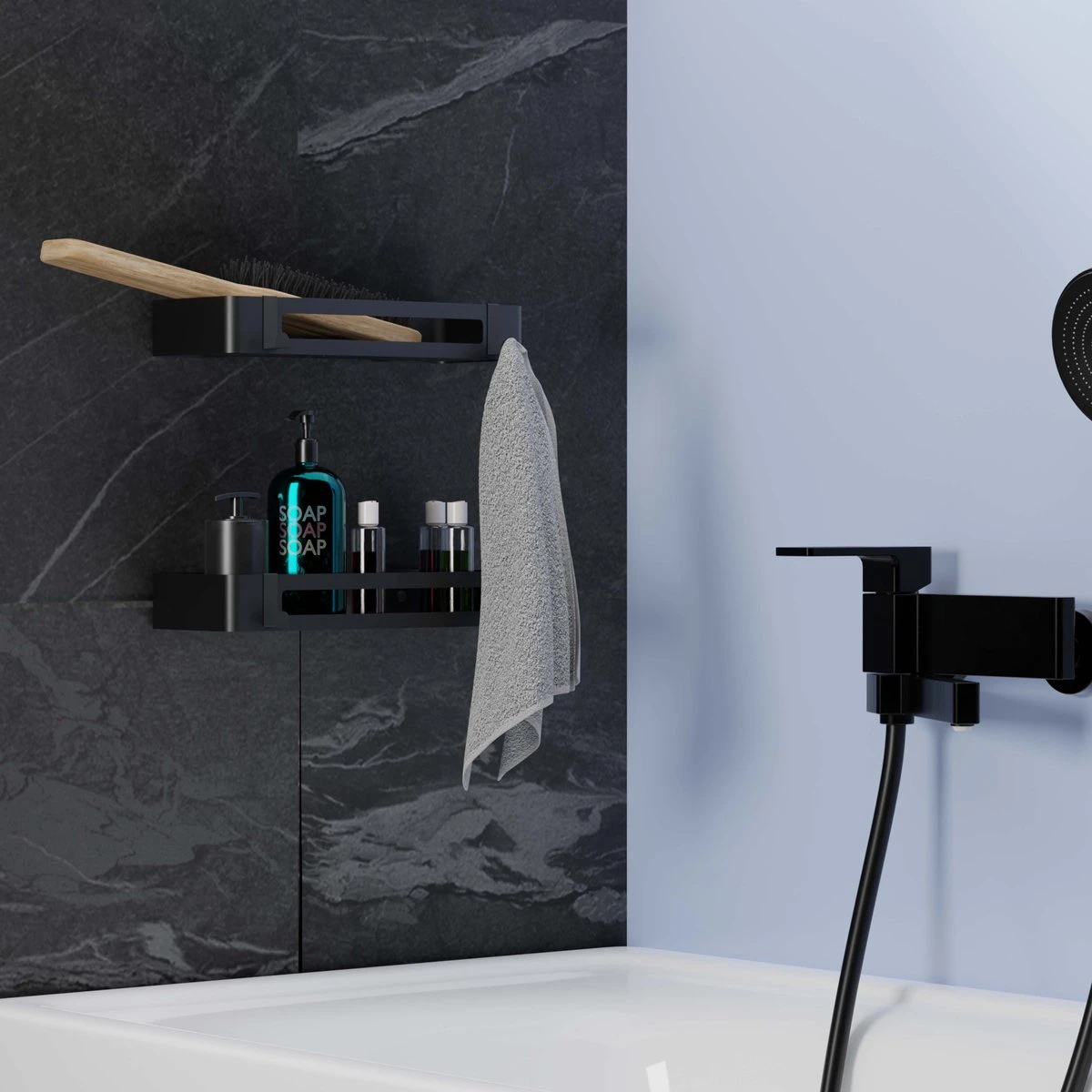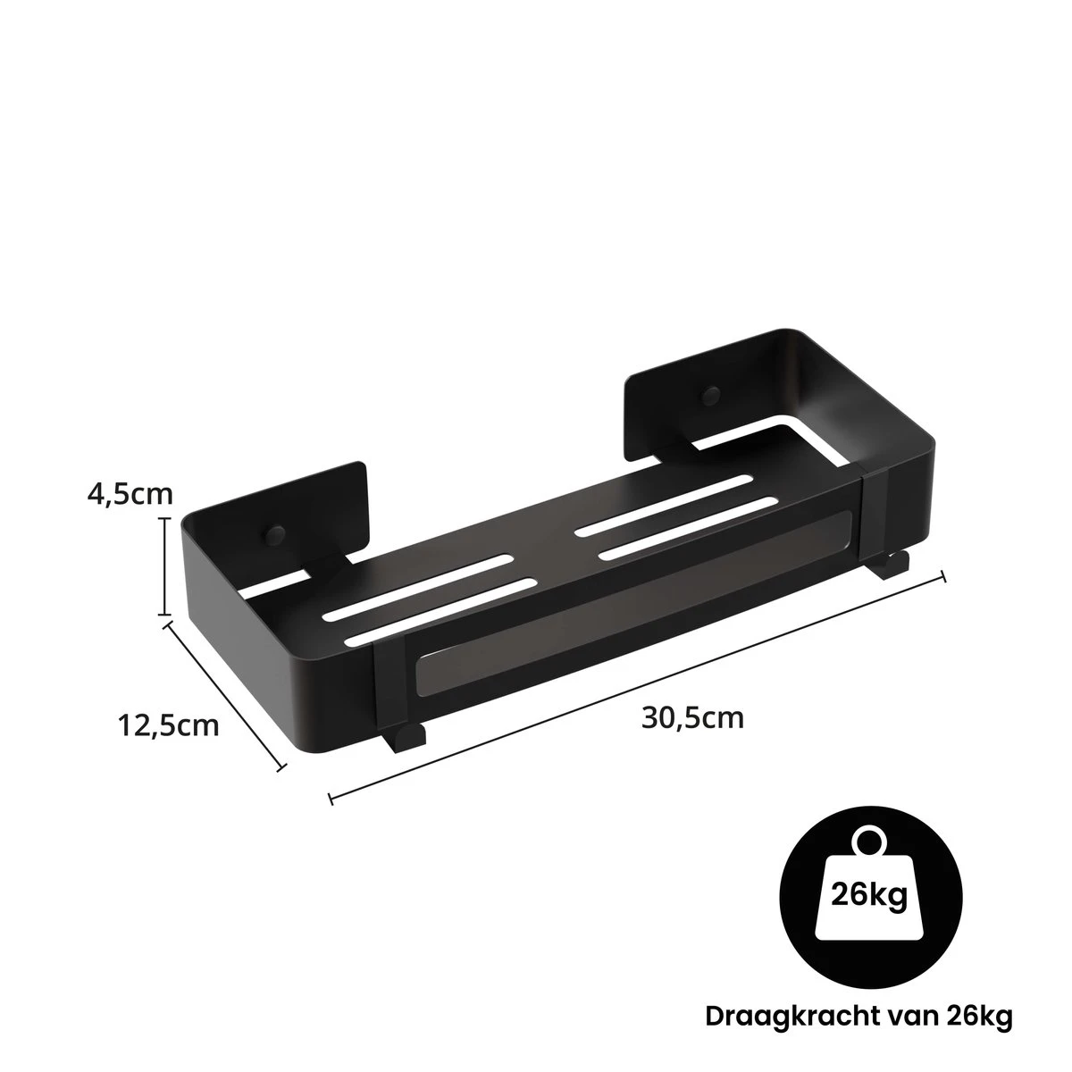 BrandtBergkamp RVS Doucherek 2 Laags – Zonder Boren – Doucherekje Hangend – Badkamerrek Zwart