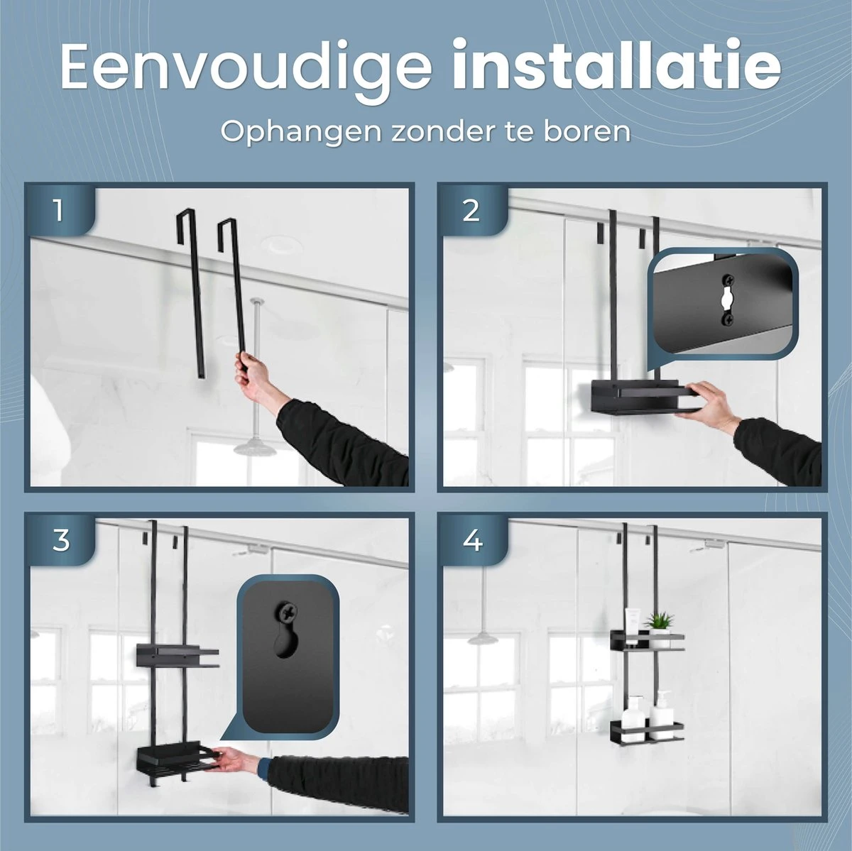 Rohzzi Doucherek Zonder Boren – 30 Dagen Uitproberen – Doucherek Hangend – Badkamer Accessoires – RVS – 2 Laags
