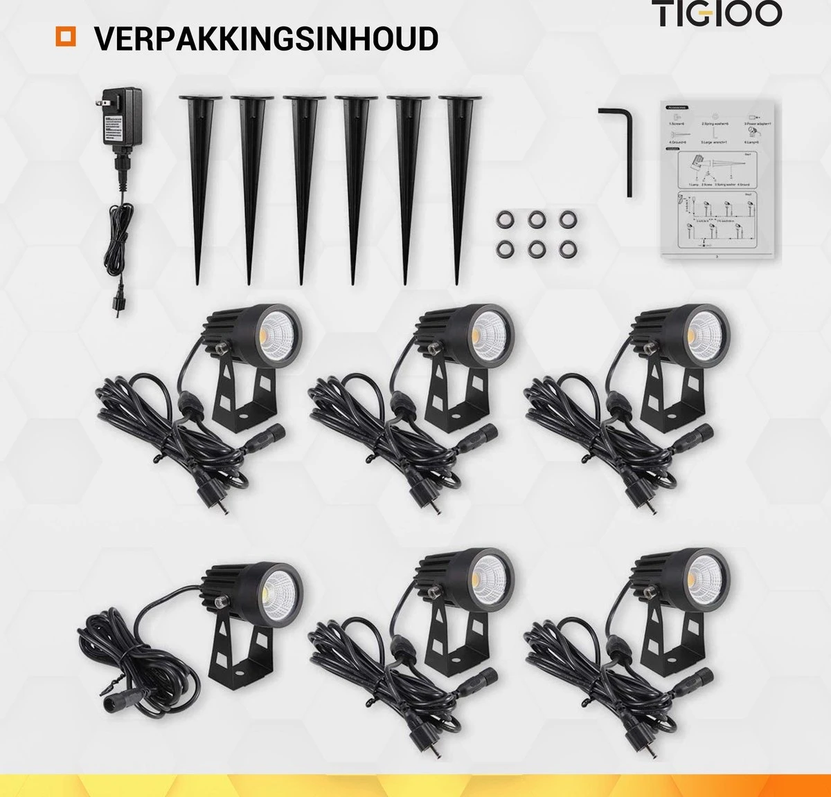 Met dit Tigioo Starter Pack 6 heb jij Tigioo tuinspots in de tuin of op je terras. Deze basisset bestaat uit 6 armaturen voor buiten en alle onderdelen die je nodig hebt voor het aansluiten. De armaturen zijn van aluminium en zijn waterdicht.