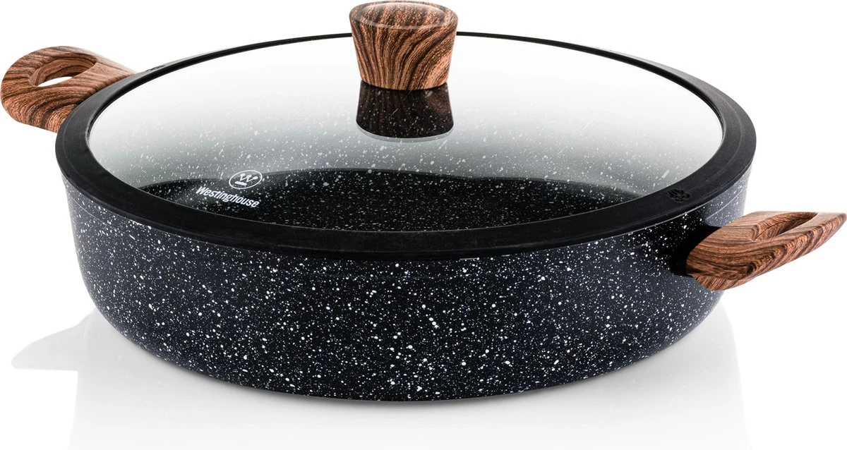 Westinghouse Hapjespan Inductie – Ø 32 Cm – Zwart Marmer – Speciale Editie – Met Deksel