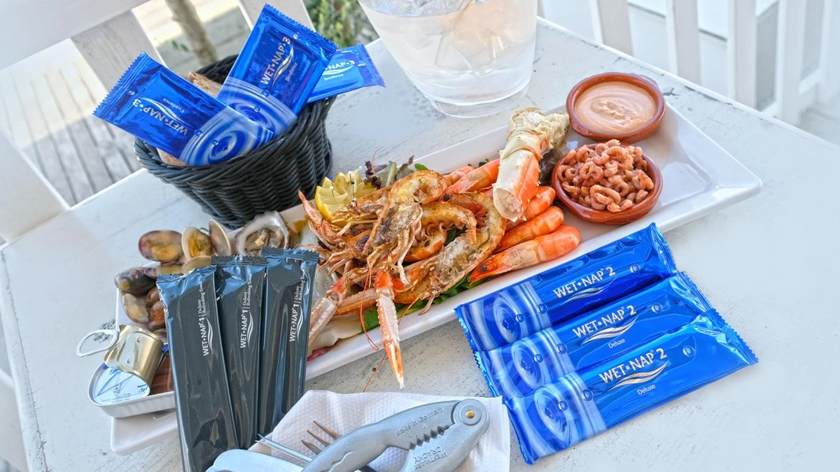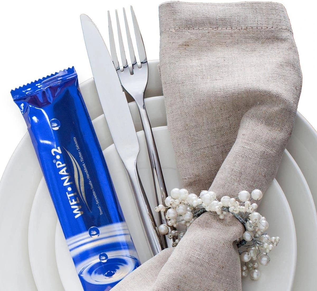 Wet-Nap staat garant voor luxueuze vochtige handdoekjes met unieke eigenschappen. Verwen je gasten en geef hen extra comfort bij hun lunch, buffet, mosselsouper of diner. De luxueuze, individueel verpakte verfrissingsdoekjes van Wet-Nap voelen aan als textiel. De zware doekstof geeft een ultra zacht gevoel en heeft een hoog absorptievermogen. De doekjes hebben een aangenaam zacht limoenparfum. De speciaal ontworpen verpakking zorgt ervoor dat de doekjes niet uitdrogen.